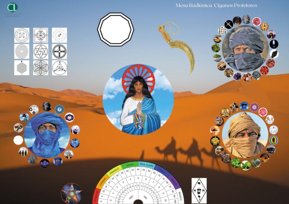 trabalha com a energia dos ciganos do deserto — Tuaregues, Beduínos e Guardiões — promovendo limpeza energética, desobsessão, proteção e abertura de caminhos.
